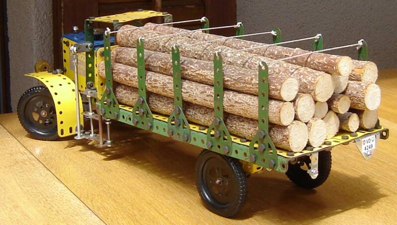 Voilà un grumier, ou camion de transport de troncs d'arbres. Il appartient à la société "Transports rapides" de Monsieur S. Cargo.